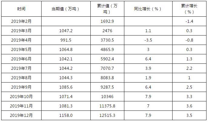 2019年全國機(jī)制紙及紙板產(chǎn)量12515.3萬噸